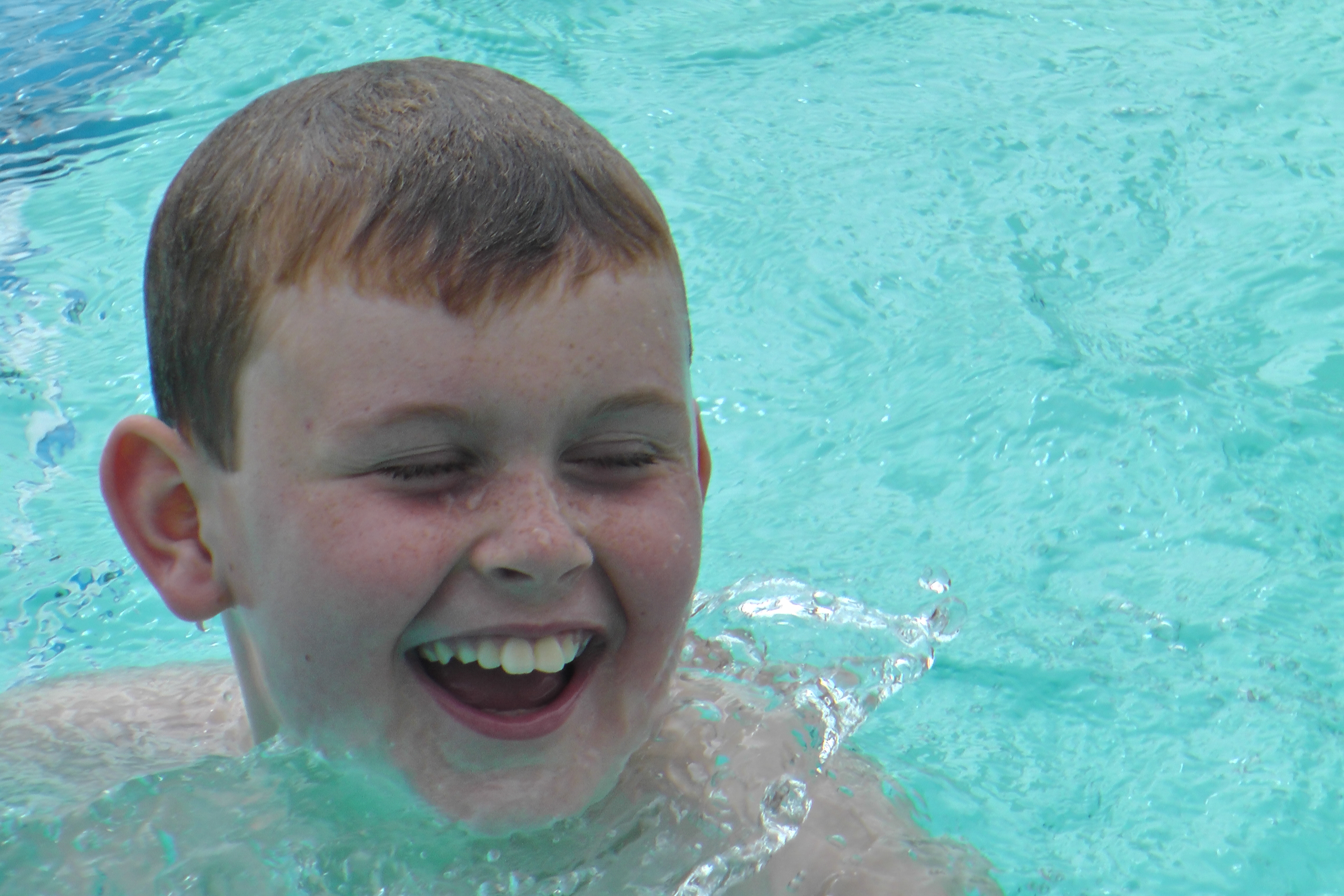 The “firsts” we don’t ordinarily remember or take for granted are some of the ones that take me by surprise the most when Alex is so taken off guard by something new to him.  This weekend Alex uncovered and was certinally surprised by opening his first hide-a-bed.  The microwave popcorn dumbfounded him as he kept trying to figure out how that was all going down.  Even the instant coffee and powered creamer was amazing to him when trying to find grounds by stiring his spoon quickly and raising it to the surface of what was once just hot water.  “Where did it go?”  The silliest and most shocking surprise was his very first dunk in a swimming pool.