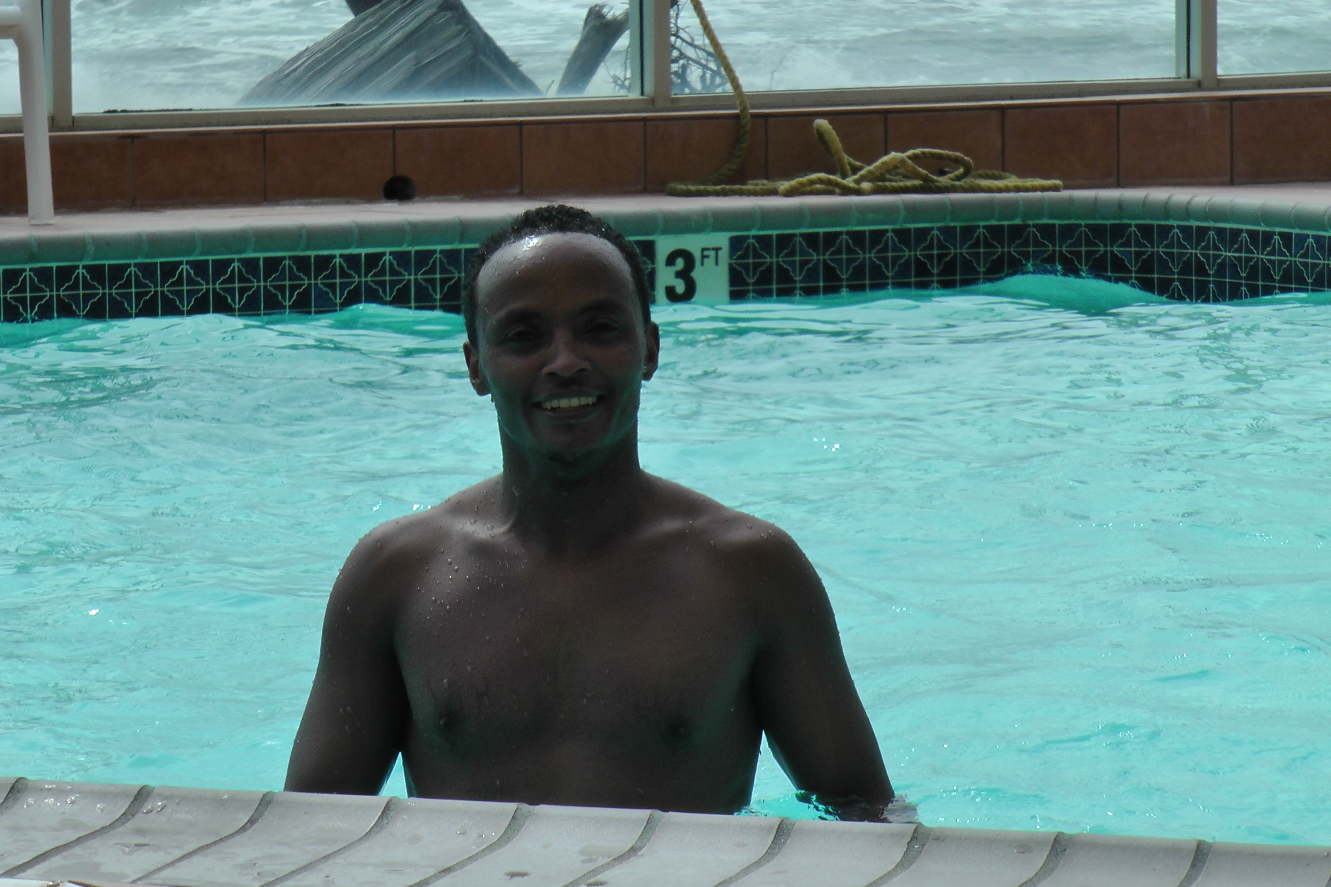 Alex explained that he had been in a pool before one time, with his brother at work.  You know, it was this big round hole dug in the ground with some water in it.  Sure, Alex….not quite like the chlorinated and sparkling beauty calling our names in front of us.  As a matter of normal brother like bantering that takes place regularly between Shane and Alex, before you knew it, unspespecting Alex was softly pushed into the pool!  While Shane was delighted by his little joke, knowing that Alex loves to have fun and certinally he would just hop back out being that he was inches from the edge, I began to panic. Alex did not turn to get out of the pool as expected but took off across the pool in a full windmill arm projection.  So much water hurling ever which way and Alex barely moving except away from the edge.  I shouted to Shane, “He CAN’T Swim!”  Oh no, what was he thinking? Shane looks at me a bit perplexed and realizes what has just happened.  What really was only seconds, seemed like minutes as we watched Alex struggle across the pool.  Would Shane need to jump in to save him?  Would Alex be traumatized forever?  Oh My.  We have really done it now.  Our sweet friend, brother and son, all rolled into one and we have totally been inconsiderate of his lack of exposure to American normalties and we may even drown the  sweet guy in our ignorance!  “Shane, you have to save him!”  Shane begins to shout, “Alex, Stand UP!!!!”  Of course Shane was aware the entire time, which I was not, that Alex was only in 4 feet of water.  “Alex, Stand UP!!!”  If you have never been in a pool, how would you know how deep it was?  Alex didn’t know how to swim.  He has floated down a few rivers, but never been in still water.  “Alex, Stand UP!!!”  I didn’t care, I just couldn’t stand to see him struggling across the pool.  I suppose he could drown in 4ft of water if he couldnt figure out it wasn’t deep.  But only a few seconds passed and although I had so much panic go rapidly through my mind, Alex grabs desperately to the side of the pool and clings for dear life.  His contagious and gigantic smile swirls around to Shane and he says “You going to Save me?”!!!  Oh my word.  Shane says one more time while Alex in holding onto the side of the pool for dear life, “Alex, Stand up.”  Alex stands up and begins to laugh histarically.  Oh my word, by now the panic is over and we are all dying with laughter.  Relief, panic, humor and craziness all being set aside and exchanged for our families laughter.  To say the least, Alex enjoyed the water immensely that day and we all took pleasure in giving him tips on trying to swim. He worked tirelessly, to make his way through the water and to learn to swim. The effortless part of his swimming skills are still in need of some development!  He never gives up.